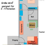 Obývací pokoj s rozkládací pohovkou pro dva (s matrací) a TV